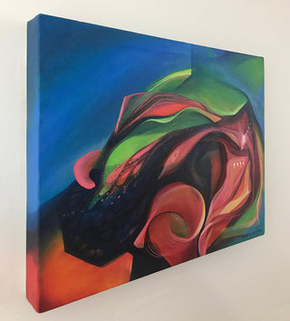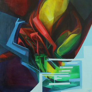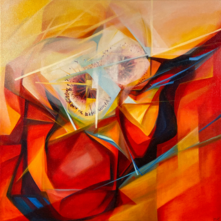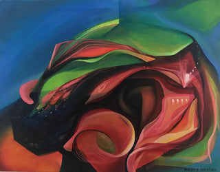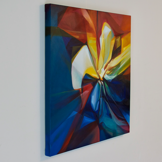 Paintings that utilize flower-like shapes as a launchpad for exploration of color/form and how it interrelates to meaning.